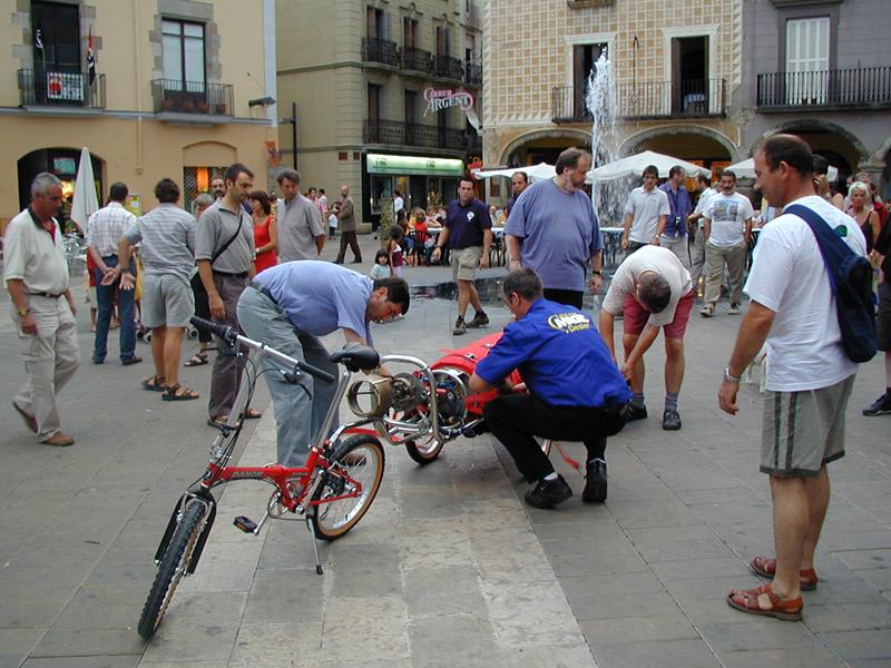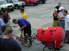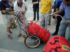 - Das Fahrrad zusammenklappen, die Räder und das Gebläse verstauen