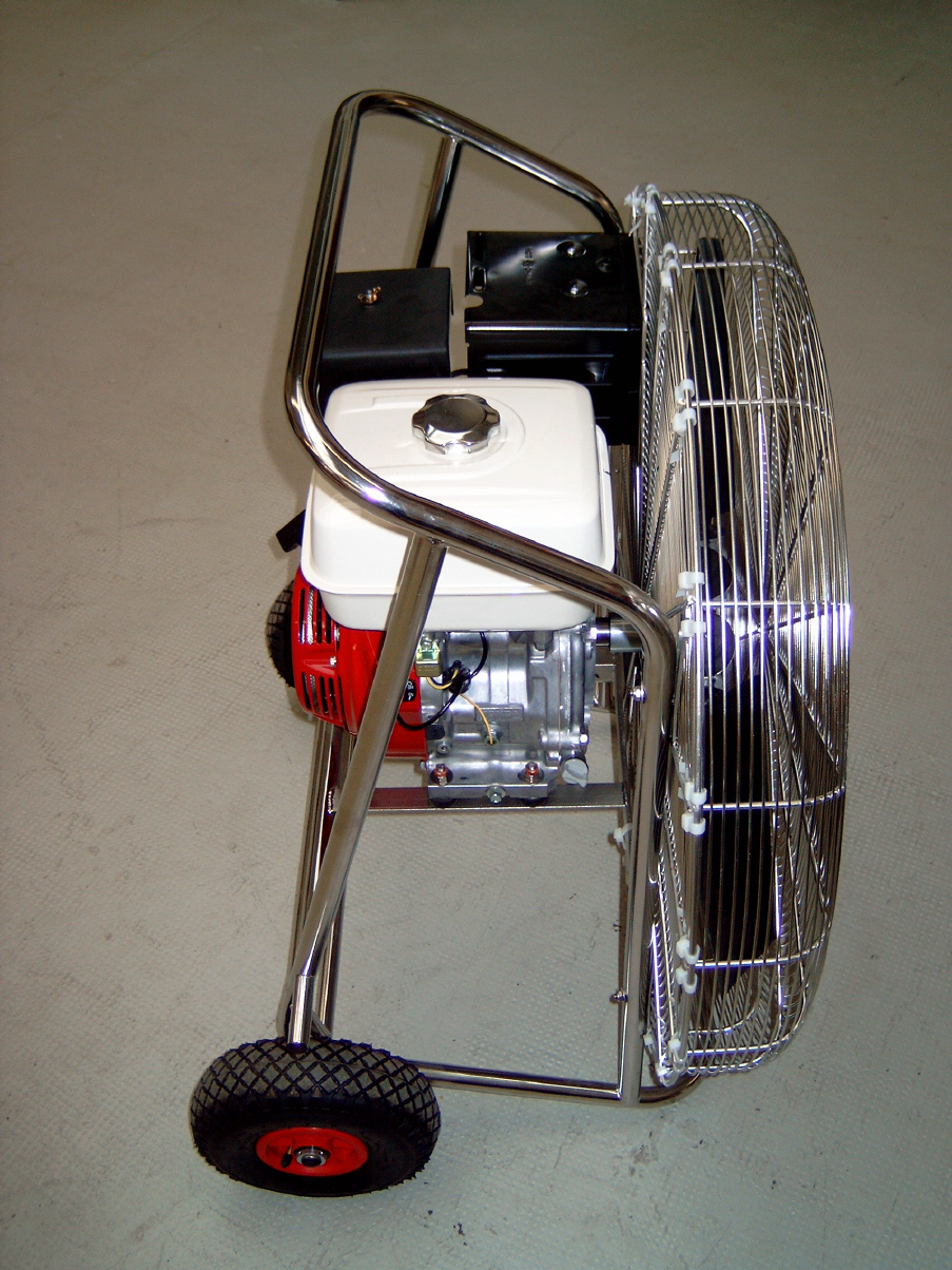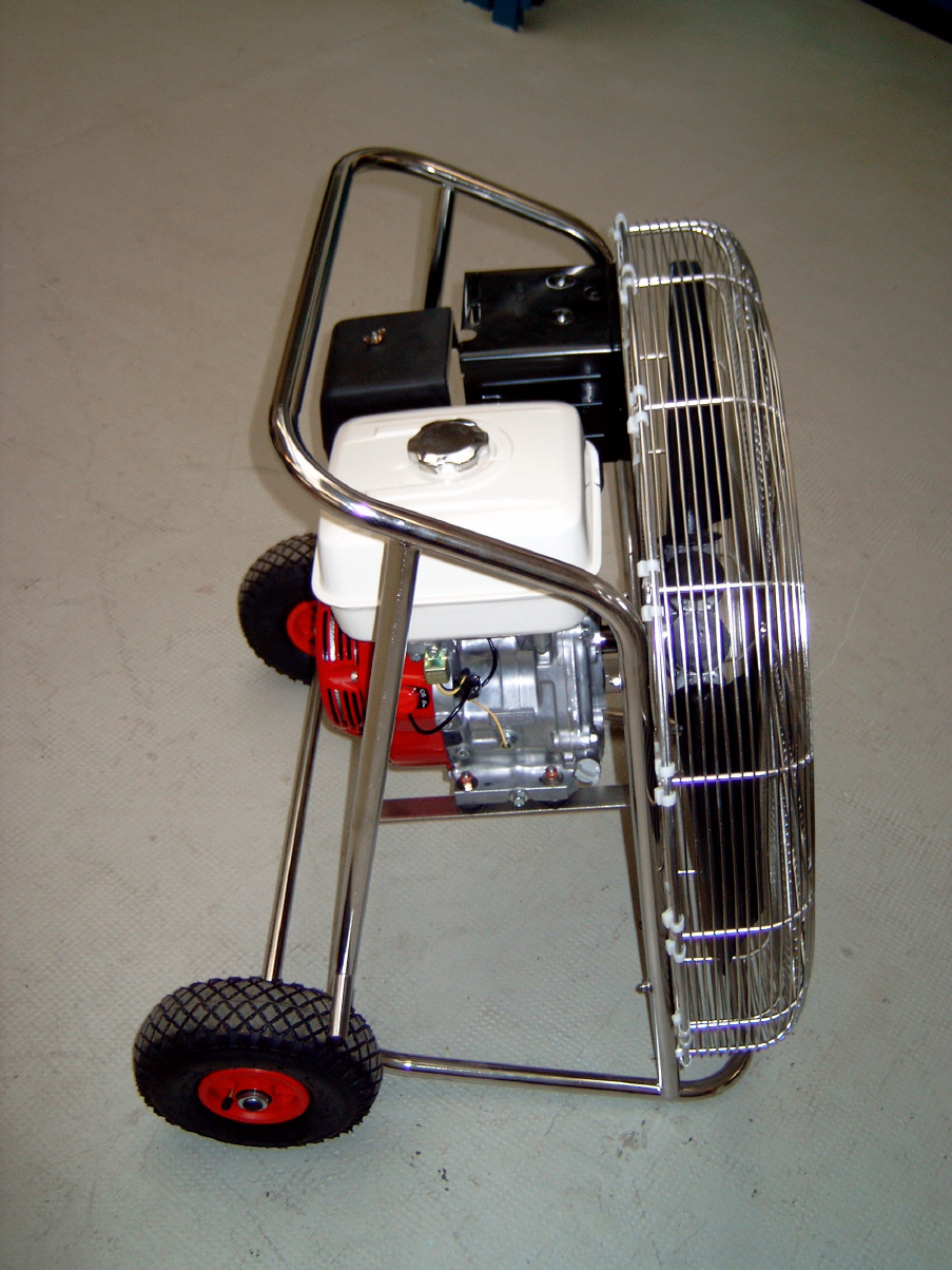 Einer der wichtigsten Bestandteile der Ausrüstung findet schon bei den Start- vorbereitungen seinen Einsatz: Das Aufrüstgebläse. Hier stehen Varianten mit 5,5 PS, 9 PS und 13 PS zur Auswahl. Alle Gebläse haben einen leistungsstarken Dreiblatt- propeller, mit einzeln auswechselbaren Blättern. |