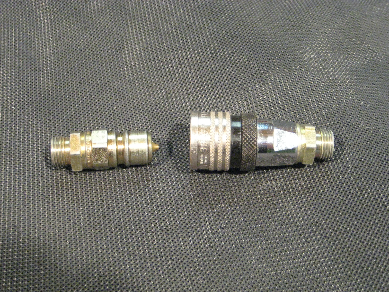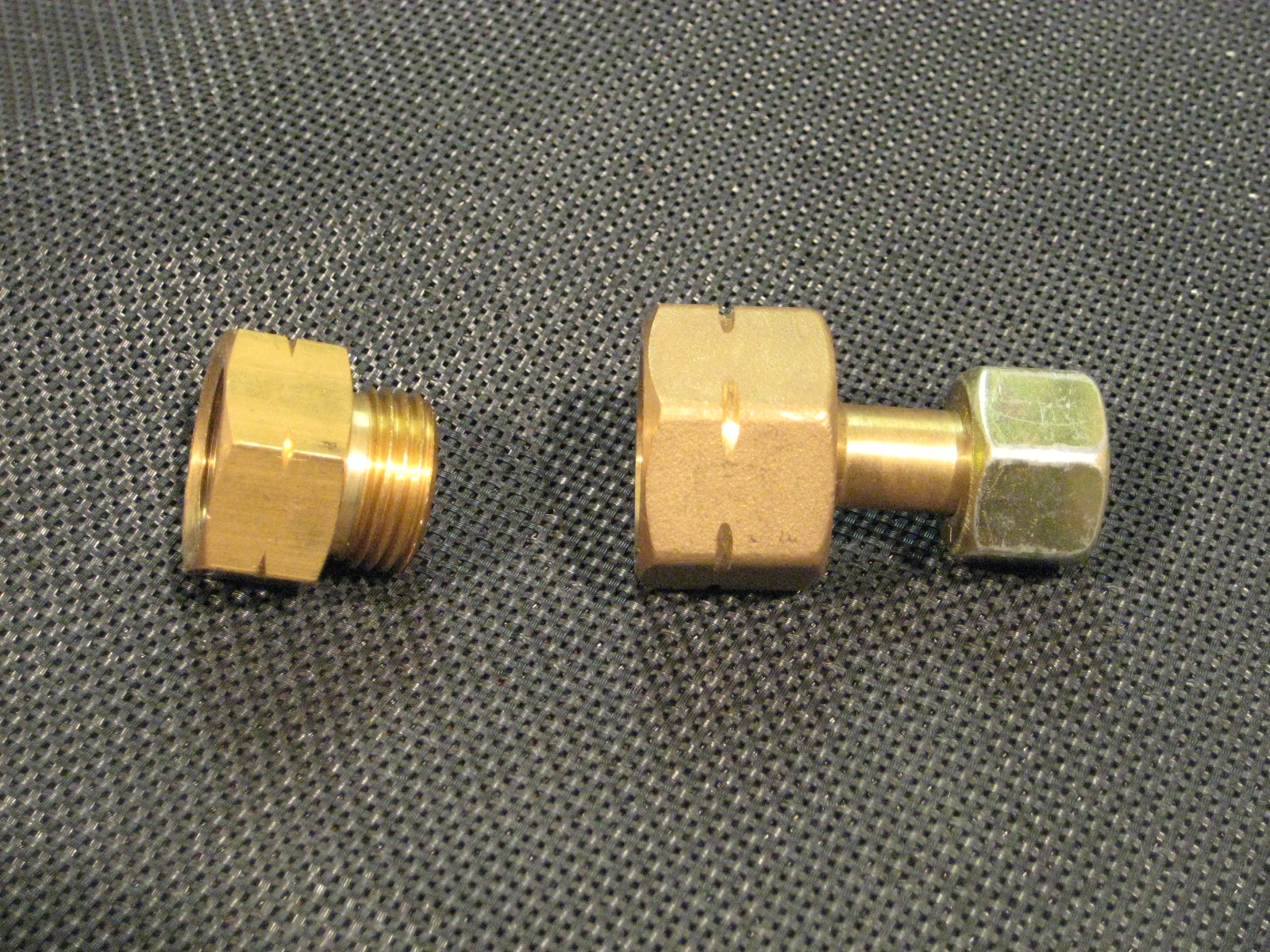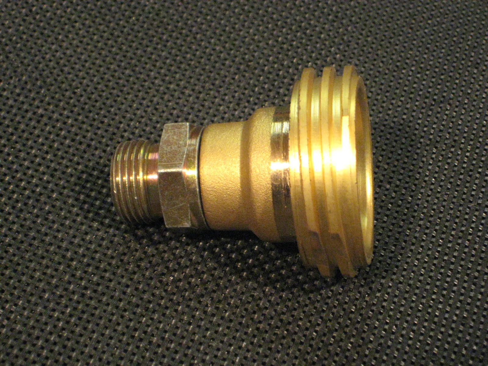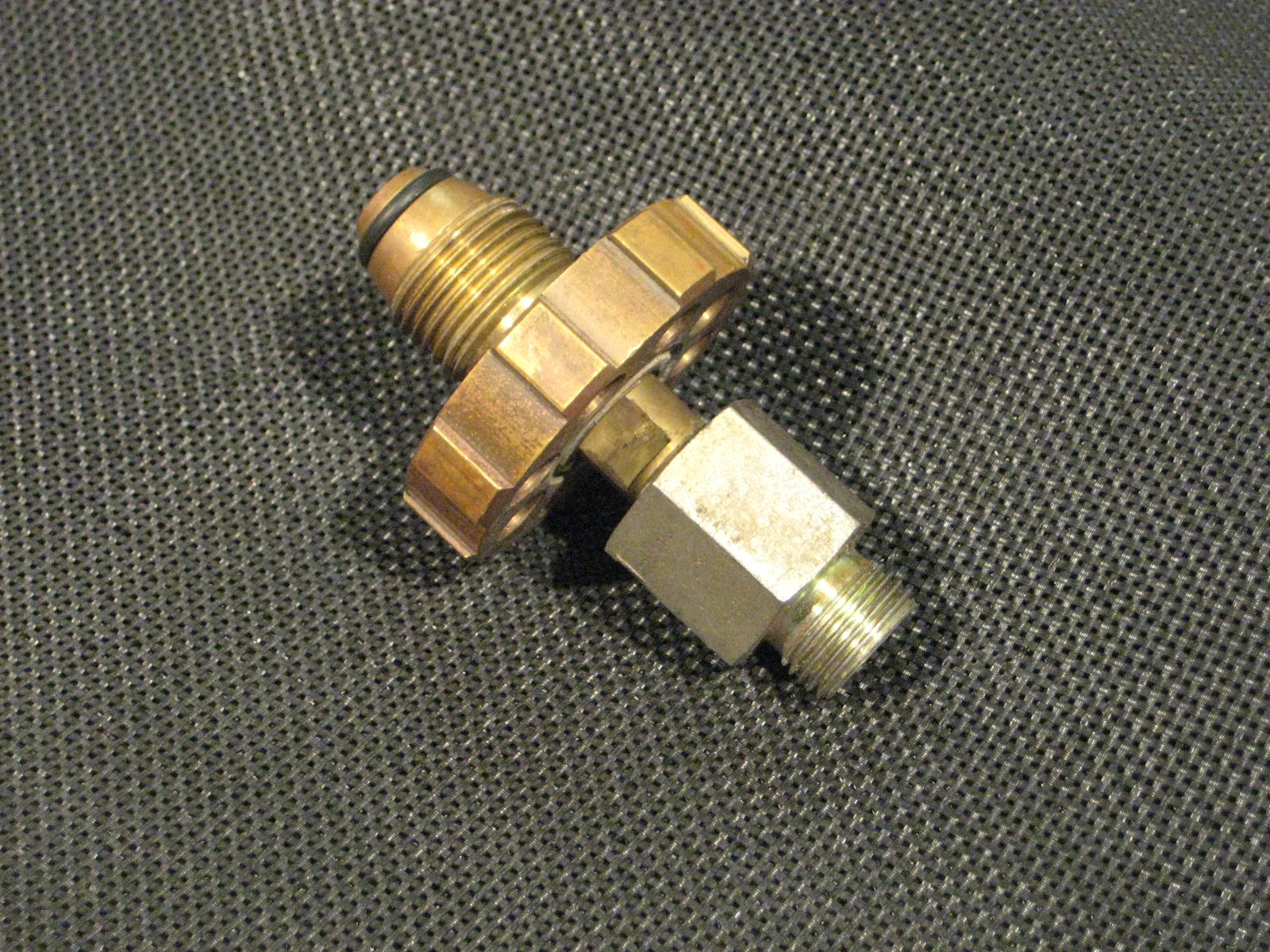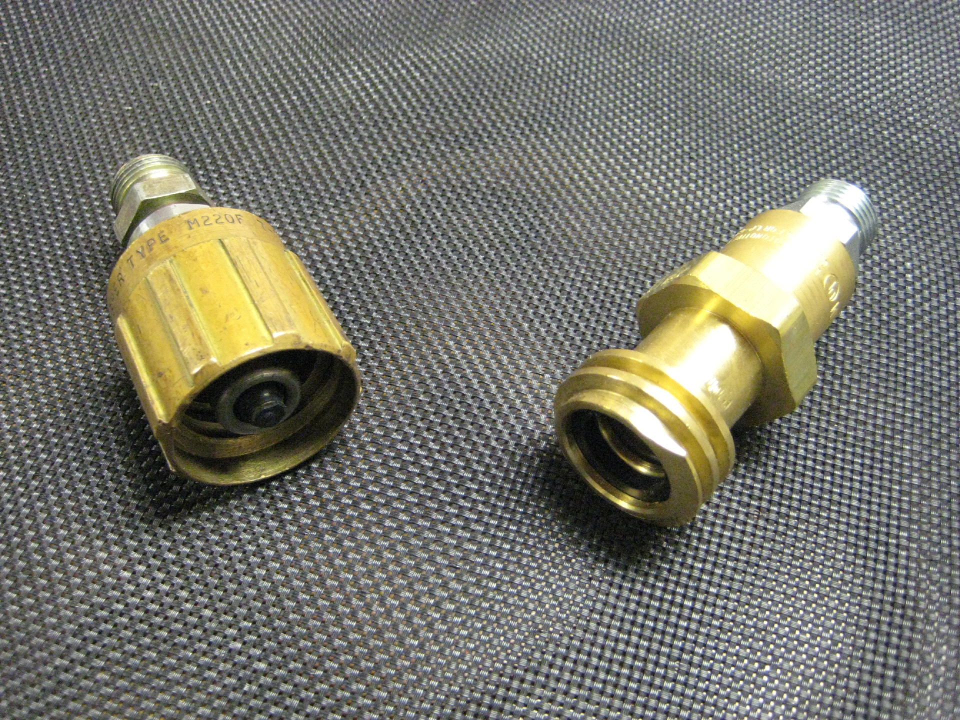 So könnte beispielsweise ein Adapter von der Gastankstelle/vom Tankwagen zu einem REGO Zylinder aussehen.