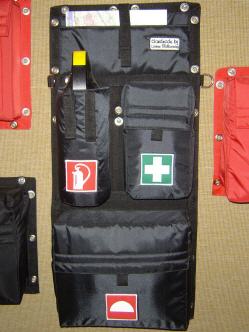 Stabile, gepolsterte Kombitasche für Feuerlöscher, Löschdecke und 1. Hilfepack. Mit diversen kleinen Seitentaschen und ICAO-Kartenfach. ab Lager. Komplett oder ohne Inhalt lieferbar.